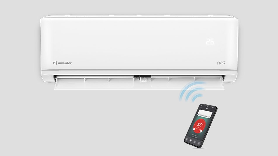 Με ενσωματωμένο Wi-Fi, μπορείτε να ελέγχετε το κλιματιστικό από όπου κι αν βρίσκεστε μέσω της εφαρμογής Inventor Control (Android & iOS).